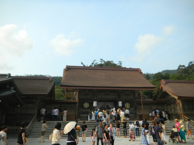 出雲大社です.出雲大社に至る道路で数キロくらい参拝渋滞していました.